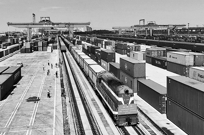 3月31日,一列满载电冰箱、咖啡机、陶瓷洁具等日用百货的中亚班列从江西南昌国际陆港启程,约6天后从中国霍尔果斯口岸出境,途经哈萨克斯坦、吉尔吉斯斯坦和乌兹别克斯坦等中亚国家,最终到达塔吉克斯坦首都杜尚别,比传统从阿拉山口出境运行时间缩短约12小时。与以往中亚班列只到达某个单一国家不同的是,这趟班列会途经中亚五国并根据需求卸载货物。胡国林 王旭鹏 摄