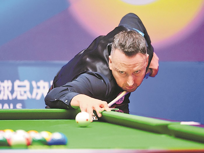 曾三度加冕中式台球大师赛总决赛冠军的英国名将波茨在比赛中精准击球。