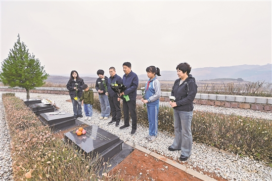 从那时起,梁家人年年为烈士祭扫,代代传承这条“家规”。今年,梁效珍的重外孙也加入了为无名烈士祭扫的队伍。