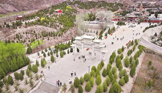 4月5日,游客在宁夏石嘴山市北武当生态旅游区踏青、游玩。