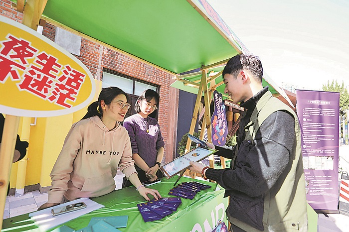 3月29日,南京101名潮里园区集市,“鼓楼青年夜校”的宣传摊位。