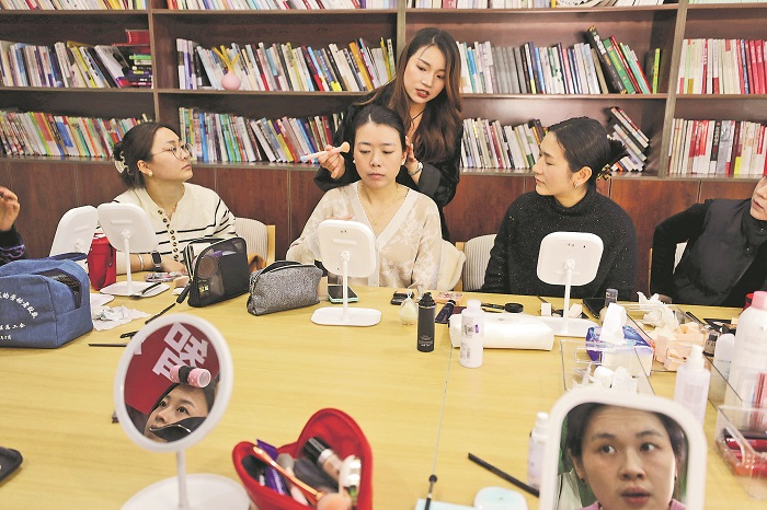 3月28日晚,南京江北新区石佛社区青年夜校形象管理课程。