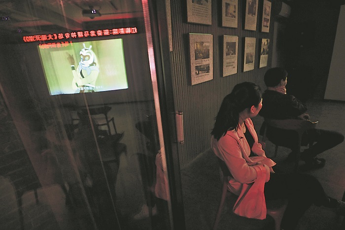 4月1日晚,南京市玄武区小红梅信仰生活空间观影活动正在播放《大闹天宫》。