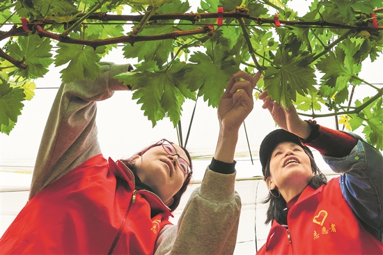 目前,正值春种春管重要时节。4月6日,由江西省新余市劳模协会、市劳模志愿服务大队组织的劳模助力志愿服务活动走进高新区水西镇江洋农场,20多名各级劳动模范义务为农场的葡萄树进行掐卷须、去负稍等果树管理作业。本报记者 王晓颖 通讯员 刘志勇 摄