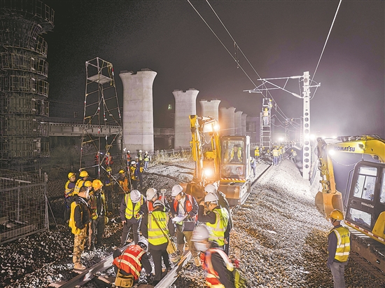 两条既有线路拨接任务完成,标志着包银高铁引入包头枢纽工程正式启动,刷新了包银高铁工程建设“进度条”。预计6月底前将完成第三次拨接,届时包银高铁内蒙古段将全面融入国家高铁网络。杨利南 肖勇 摄