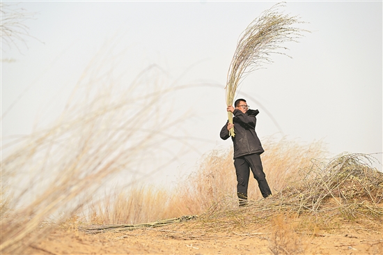 冯慧管护自家2500亩的林场,承包村里沙地栽种沙柳、杨树等植物,还担任护林员。如今,治沙工作还能为他增收:“平茬后的沙柳条经过处理变成沙柳苗,不仅能在本地销售,还卖到了宁夏、新疆等地,仅这一项每年就有5万多元的收入。”