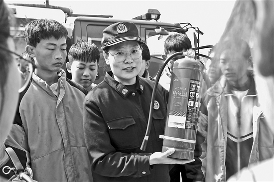 近日,在山东省滨州市沾化区大高镇应急救援站,消防宣传员给学生介绍消防器材。加强校园安全教育,增强学生自我防护和应急能力,成为本次安全知识普及的主题。