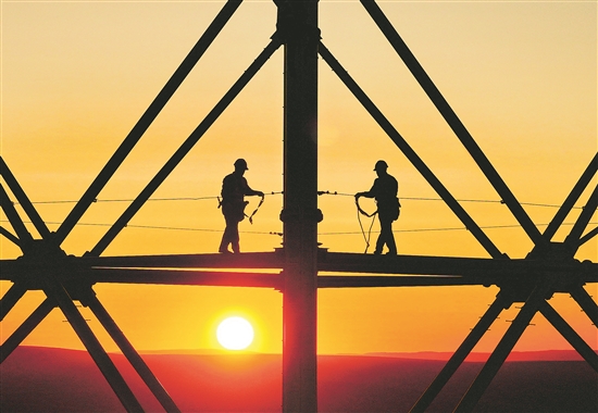 眼下,张北—胜利1000千伏特高压输电交流项目工程内蒙古段组塔工作进入高峰阶段,施工人员抢抓工期,力争早日完成组塔任务。该项目起于河北省张家口市张北变电站,止于内蒙古锡林浩特市胜利变电站,于2023年8月开工建设,是国家“十四五”电力发展规划重点项目,计划年内投入运行。