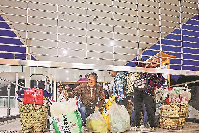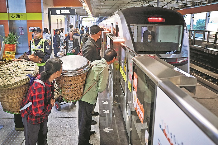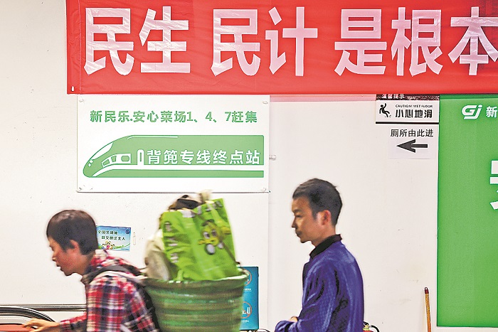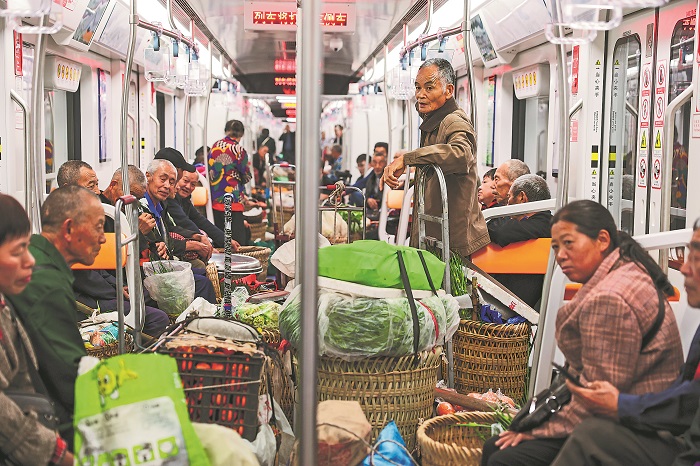 “以前只能在村里卖,有了地铁之后,我们都能去城里卖了,价格能多卖一两倍。我们都有公交卡,超过65岁就能免费坐地铁。”周庆兰说,她的声音里带着自豪和满足。经过50多分钟的跋涉,周庆兰终于将30多斤的蔬菜背到了石船站。此时,地铁站入口处的菜农已经排起了长队。