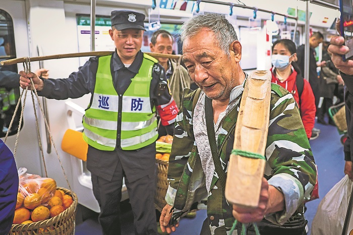 对于“背篓专线”,起初也有人反对,建议在地铁高峰时段禁止携带菜筐,但当地轨道交通暖心回应:只要行为和物品合规,就不会干涉。用人性化安排呵护老百姓的烟火日常。“一条地铁,就是既装得下公文包,也容得下背篓扁担,我觉得这才是城市包容性的体现,菜农们也是城市的一分子,他们的生活方式应该得到尊重。”一位乘客说。一路上,车厢内的乘客,他们或匆忙或悠闲,但对这些背着背篓的老人,总是报以微笑和尊重。