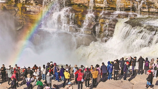 壶口瀑布现“清流飞瀑”景观