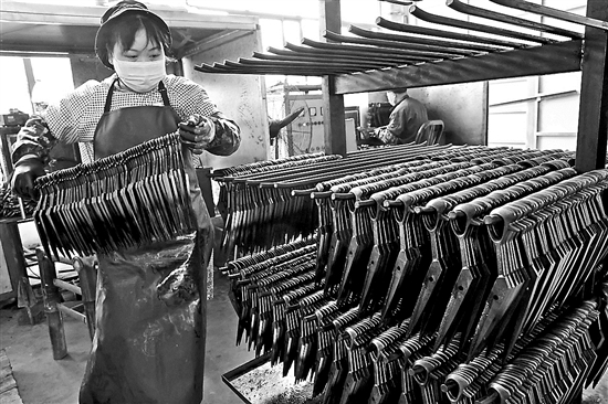 柘荣有“中国刀剪之乡”的美誉,其独特的水磨、淬火工艺享有盛名。近年来,当地通过政策引导、科技创新、落实财税政策等举措,加快刀剪产业转型升级,目前已形成民用剪、服装剪、园林剪等25个品种、100多种规格的产品序列,产品畅销海内外。新华社发(王旺旺 摄)