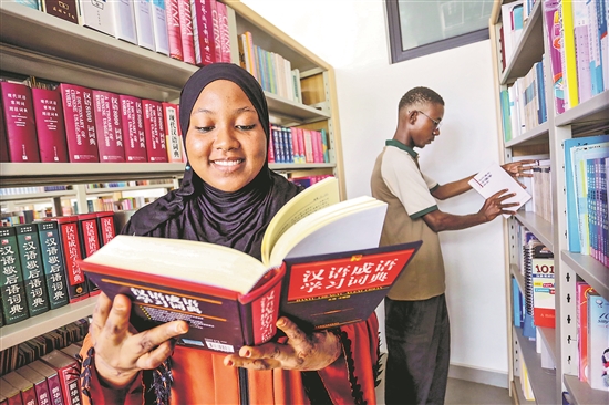 在坦桑尼亚达累斯萨拉姆大学,孔子学院图书馆常常座无虚席,就连书架前都挤满了学生,这座图书馆被称为“丝路书屋”。图为近日,当地学生在坦桑尼亚达累斯萨拉姆大学孔子学院图书馆查阅书籍。新华社发