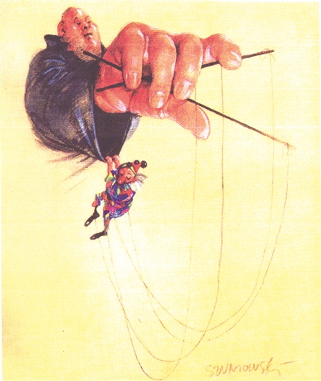木偶戏中的小丑倏地跳出“三尺舞台”,向操盘手提出罢工的要求。它的举动是嫌待遇不公平?还是工作繁重身体吃不消?