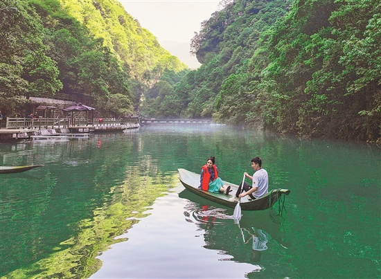屏山旅游景区以水质清澈闻名。“五一”假期临近,屏山景区推出仿生“箬叶”船等新型游船,带给游人漂浮于碧波之上的游览体验。