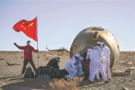 4月30日,神舟十七号载人飞船返回舱在东风着陆场成功着陆。