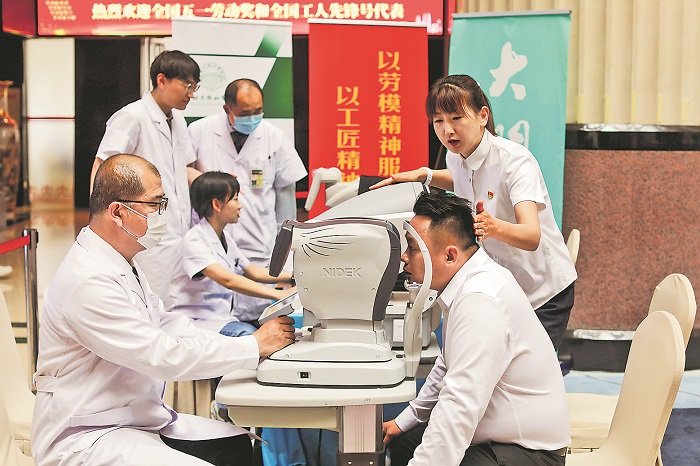 4月27日,中国职工之家,刚刚抵达驻地的代表们进行免费的眼睛检测。
