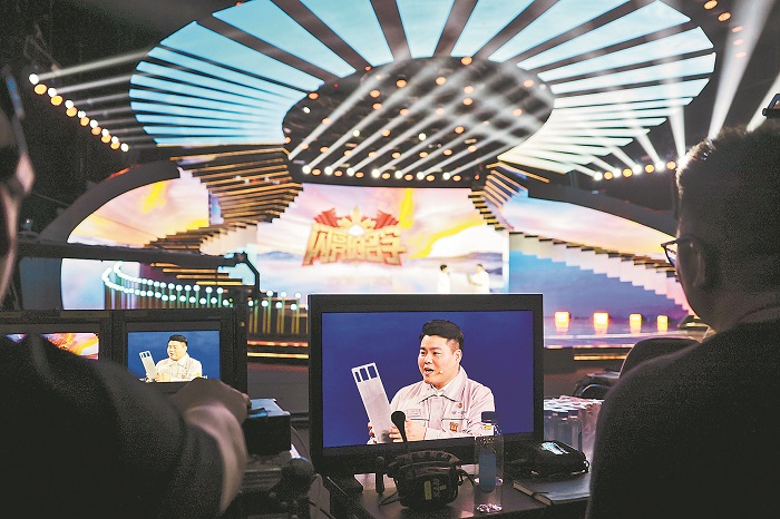 4月24日,北京,2024年“最美职工”发布仪式录制现场,来自一汽解放汽车有限公司商用车开发院试制部的数控机床技能师时敬龙在讲述自己的故事。