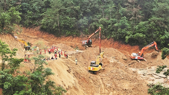 5月2日,救援力量在广东梅大高速茶阳路段塌方灾害现场作业。 5月1日2时10分许,广东省梅州市梅大高速茶阳路段发生塌方灾害。截至目前,灾害已造成48人死亡、30人受伤。相关救援力量正在现场全力进行抢险救援、风险排查等各项工作。