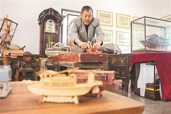 日前,浙江省嘉兴市秀洲区油车港镇的一处非遗工坊内,72岁的嘉兴市非遗造船技艺传承人张来生正在制作红船模型。嘉兴作为红船起航地,每年都会吸引众多的游客来此参观游览,感受当地的红色文化。近年来,嘉兴围绕自身文化特色,将非遗木作与红色文化相结合,邀请老木匠手工制作,开发出别具特色的文旅产品,受到游客追捧。