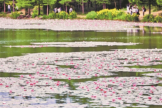 近日,江苏省南京市紫金山燕雀湖,睡莲盛开,仿佛现实版的“莫奈花园”。泱波 摄/中新社