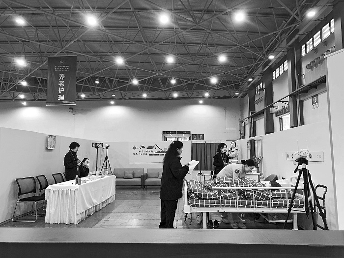 5月8日至10日,第二届全国乡村振兴职业技能大赛在贵州省贵阳市举办。大赛围绕农村实用技能,设砌筑、汽车维修、农机修理、电工、美发、养老护理、育婴等11个比赛项目,旨在通过各地培训和选拔,带动更多人关注技能、学习技能、提升技能,激发他们在乡村振兴过程中施展才干、建功立业。图为养老护理项目比赛现场。本报记者 李丹青 摄
