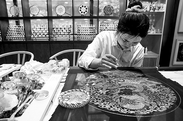 “之前在互联网工作,我就想了一个‘黄梅+’的模式”,就是将黄梅挑花和现代元素结合,比如将挑花作为装饰做成墙面、灯罩、匾额等等。不久前就有顾客找到她,定制挑花的窗帘。“有点像‘高定’了”,她戏言。