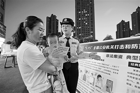 5月13日,安徽省淮北市公安局相山分局经侦大队民警向市民宣传经济犯罪的危害和防范措施。本报通讯员 张锋 摄