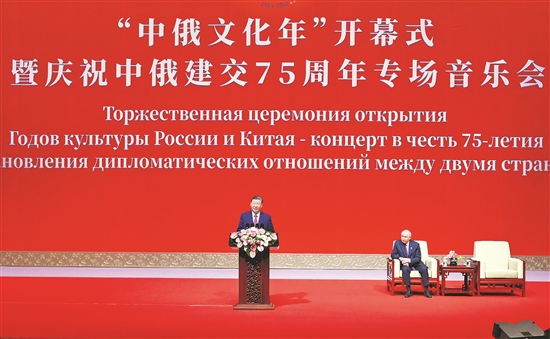 习近平同俄罗斯总统普京共同出席“中俄文化年”开幕式暨庆祝中俄建交75周年专场音乐会并致辞