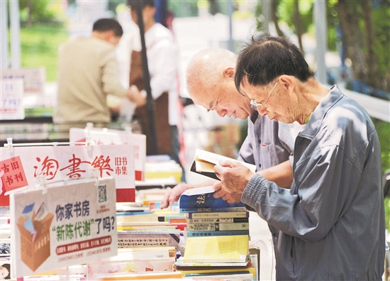 5月15日,上海全民阅读“书香”氛围日益浓厚,2024上海书展“淘书乐”旧书市集近日在“半马苏河”旁的天安千树拉开帷幕,为市民带来了一场集淘书、收购、文创、讲座、互动体验等多种形式于一体的文化盛宴,吸引不少书迷专程前来打卡购书。