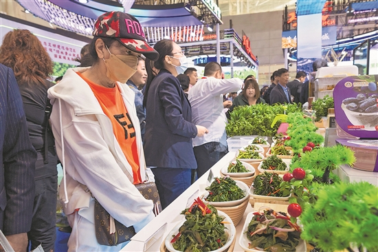在哈尔滨国际会展中心举办的第八届中俄博览会上,来自不同国家和地区的各式美食吸引了人们的眼球,与会者的观展感受通过各种美味“延伸”到舌尖味蕾。新华社记者 谢剑飞 摄