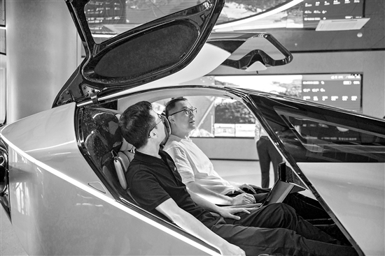 5月15日,参观者在广州市番禺区小鹏汇天总部体验飞行汽车旅航者X2。