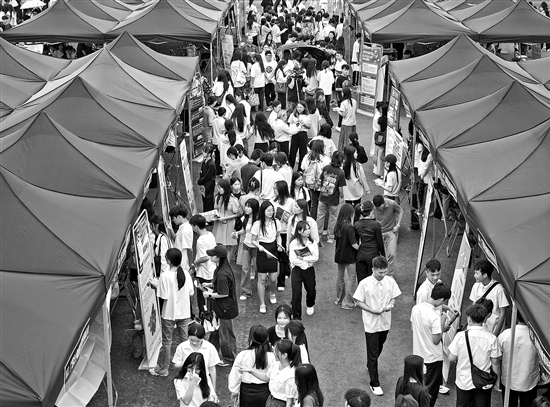 5月18日,广西国际商务职业技术学院学生在校园双选会上寻找合适岗位。该校采取多种措施,为毕业生拓展就业领域,搭建校企合作平台,吸引140多家企业携7500多个就业岗位前来招贤纳士。 新华社记者 周华 摄