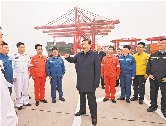习近平强调,山东要在进一步全面深化改革、推进高水平对外开放上勇争先。要聚焦推进中国式现代化,在解决制约高质量发展的突出矛盾上下功夫,在完善制度、健全机制、激发活力、增添动力上用实劲。要积极构建国际物流大通道,大力推动自由贸易区联动创新,建设好制度型开放示范区,深度融入高质量共建“一带一路”,精心打造重大国际交流合作高能级平台,努力成为畅通国内国际双循环的重要节点。