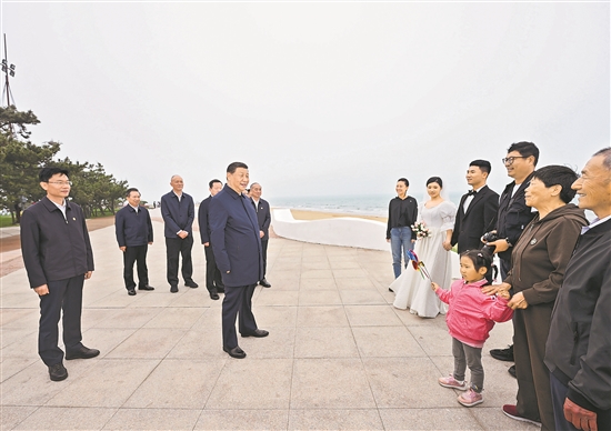 5月22日至24日,中共中央总书记、国家主席、中央军委主席习近平在山东考察。这是22日下午,习近平在日照市阳光海岸绿道同市民亲切交流。 新华社记者 谢环驰 摄