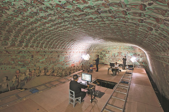 敦煌研究院文物保护团队正在做数据采集。受访者供图