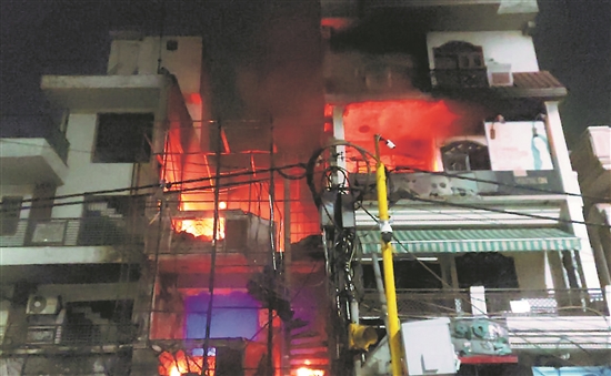 这是当地时间5月26日在印度德里维韦克维哈尔地区拍摄的发生火灾的婴儿护理中心。