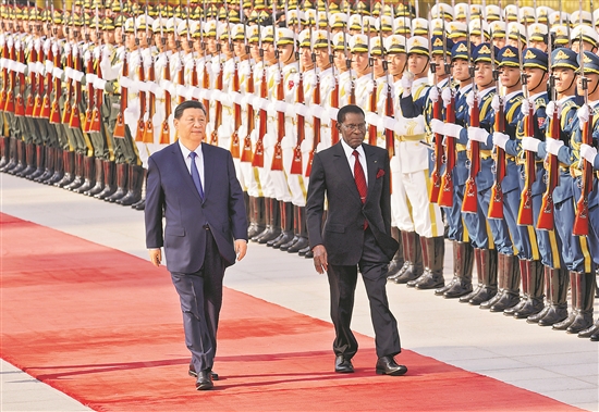 习近平强调,当今世界变乱交织,百年变局加速演进,人类社会面临前所未有的挑战,发展中国家比以往任何时候都更需要加强团结合作。中方愿同赤道几内亚等广大发展中国家一道,弘扬和平共处五项原则精神,在国际事务中加强协调配合,维护发展中国家共同利益和国际公平正义,推动构建人类命运共同体。发展同非洲国家团结合作是中国外交政策的重要基石。中方愿同非方开好新一届中非合作论坛峰会,进一步弘扬传统友好,深化团结协作,共商未来发展合作大计,开启构建中非命运共同体的新篇章。