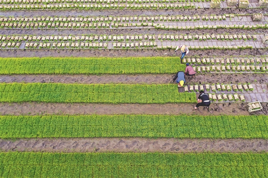 “三夏”时节,各地农民抢抓农时忙插秧,田间地头一片忙碌景象。