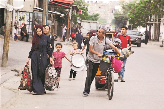 联合国近东巴勒斯坦难民救济和工程处近日在社交媒体上表示,以色列本月初以来在拉法的军事行动已迫使近100万人逃离。图为近日,在加沙地带南部城市拉法,人们逃离家园。