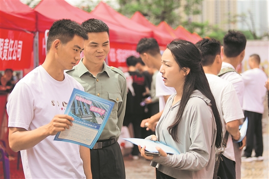 当日,云南省红河哈尼族彝族自治州在蒙自市举办退役军人及军属就业专场招聘会,百余个岗位共招聘1200余人,涉及工艺技术、销售运营、行政客服、电子电工、家政等行业。 新华社发(王俞 摄)