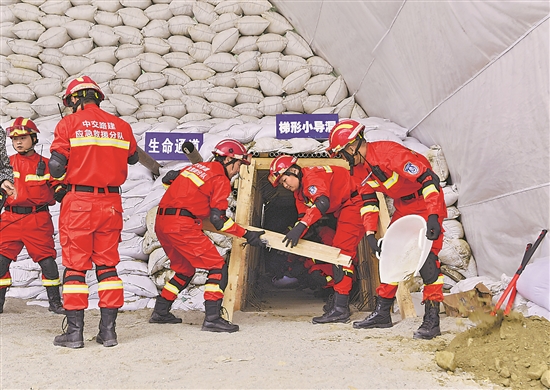 6月6日,西藏自治区交通运输厅和应急管理厅与中国交通建设股份有限公司联合在西藏林芝市色季拉山隧道开展综合应急预案暨隧道坍塌事故专项应急预案演练,提升应急救援能力、促进安全生产。 新华社记者 张汝锋 摄