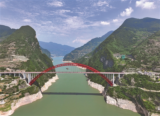 6月6日,船舶行驶在水位下降后的湖北省宜昌市秭归县兵书宝剑峡水域。