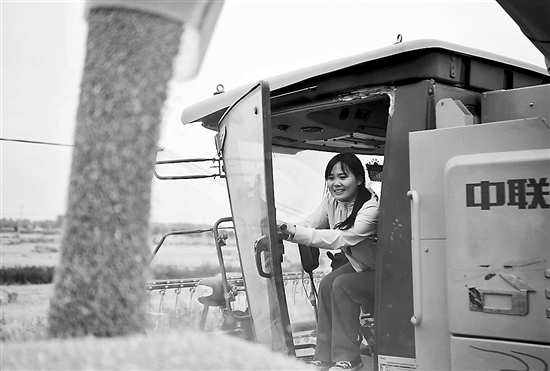 今年4月,杜梦园拿到了由鲁山县农业机械技术中心颁发的拖拉机和联合收割机驾驶证,成为了一名持证女机手。每次开收割机出门,村民都十分好奇,跑过来围观,干完活后他们都竖起大拇指,说“这妮儿真中”。新华社记者 郝源 摄