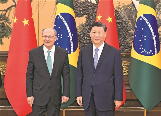 习近平指出,中巴是志同道合的好朋友、携手前行的好伙伴。去年4月,我同卢拉总统就引领开辟新时代中巴关系新未来达成重要共识。一年多来,在双方共同努力下,两国战略互信不断深化,务实合作持续推进,在国际场合密切协作,不仅促进了各自发展,也有力维护了广大发展中国家的共同利益。