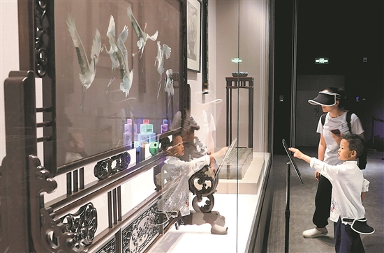 6月10日,市民在河南郑州商代都城遗址博物院里观看苏州园林美学展上的展品。当日是端午节假期,郑州商代都城遗址博物院举办苏州园林美学展,市民通过参观百余件展品,领略闲雅诗意的苏式生活。