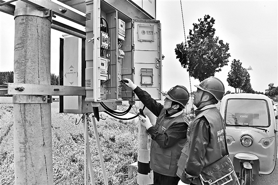 为确保“三夏”期间安全可靠用电,日前,国网浚县供电公司组织焦裕禄共产党员服务队到该县王庄镇对农排用电设备进行“拉网式”巡视排查,以“满格电”助力“夏收、夏种、夏管”。郭顺发 摄