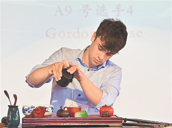 近日,在德国汉堡,选手在第十七届“汉语桥”世界中学生中文比赛暨第四届“汉语桥”世界小学生中文秀德国赛区决赛上表演茶艺。新华社记者 任鹏飞 摄