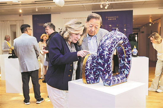 “文明互鉴的见证——中国景泰蓝艺术交流展”近日在瑞典首都斯德哥尔摩中国文化中心开幕,活动特邀中国工艺美术大师钟连盛现场带来“走进景泰蓝的世界:古老中国600年艺术瑰宝”主题演讲。主办方还专门设置了以“端午粽关情”为题的景泰蓝制作互动体验环节,中国工艺大师现场教授如何制作端午主题的景泰蓝饰品,吸引众多民众参与。图为近日人们在瑞典首都斯德哥尔摩中国文化中心欣赏中国景泰蓝传统工艺品。 新华社发