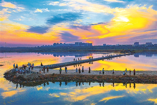近年来,山西运城盐湖启动“退盐还湖”,湖区的工业生产活动被全面清退,堤岸整治、江道疏浚等生态修复工程顺利实施。如今,从产盐池、工业区到旅游打卡地、生态保护区,运城盐湖在转型发展中迎来新的机遇。新华社发(闫鑫 摄)